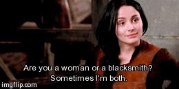 In the movie, ‘A Knight’s Tale,’ it is a woman who constructs the breastplate that best guards the heart of Sir Ulrich. It is lightweight, flexible, but durable. He is able to joust without unnecessary constraints. I used to be my sons’ blacksmith. The sole designer of their shields. But they are now young men. They must forge their own suitable armour.